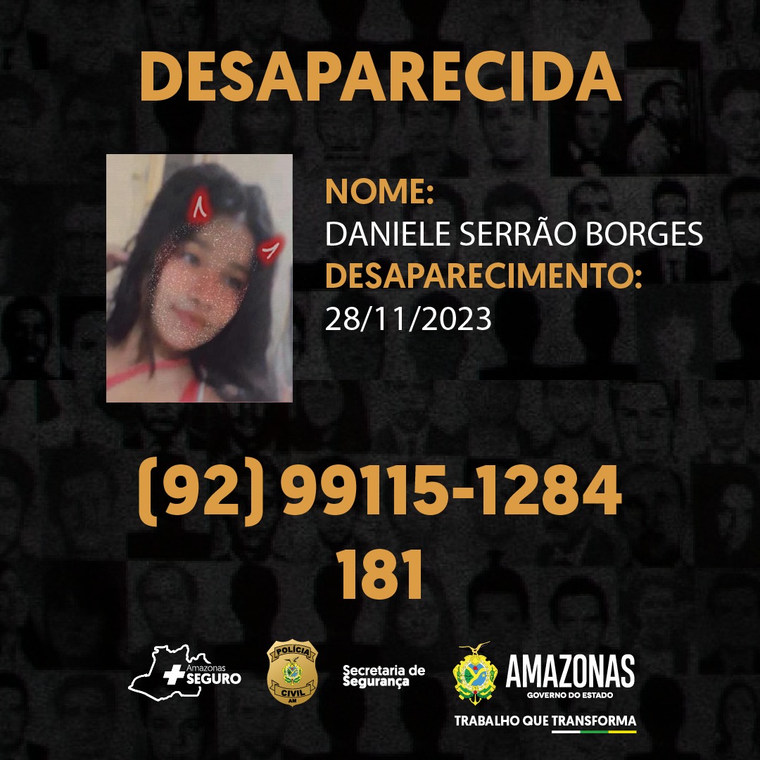 Daniele Serrão Borges, 13, está desaparecida desde o dia 28 de novembro deste ano, quando foi vista pela última vez na rua Natal, bairro Japiim, zona sul.
