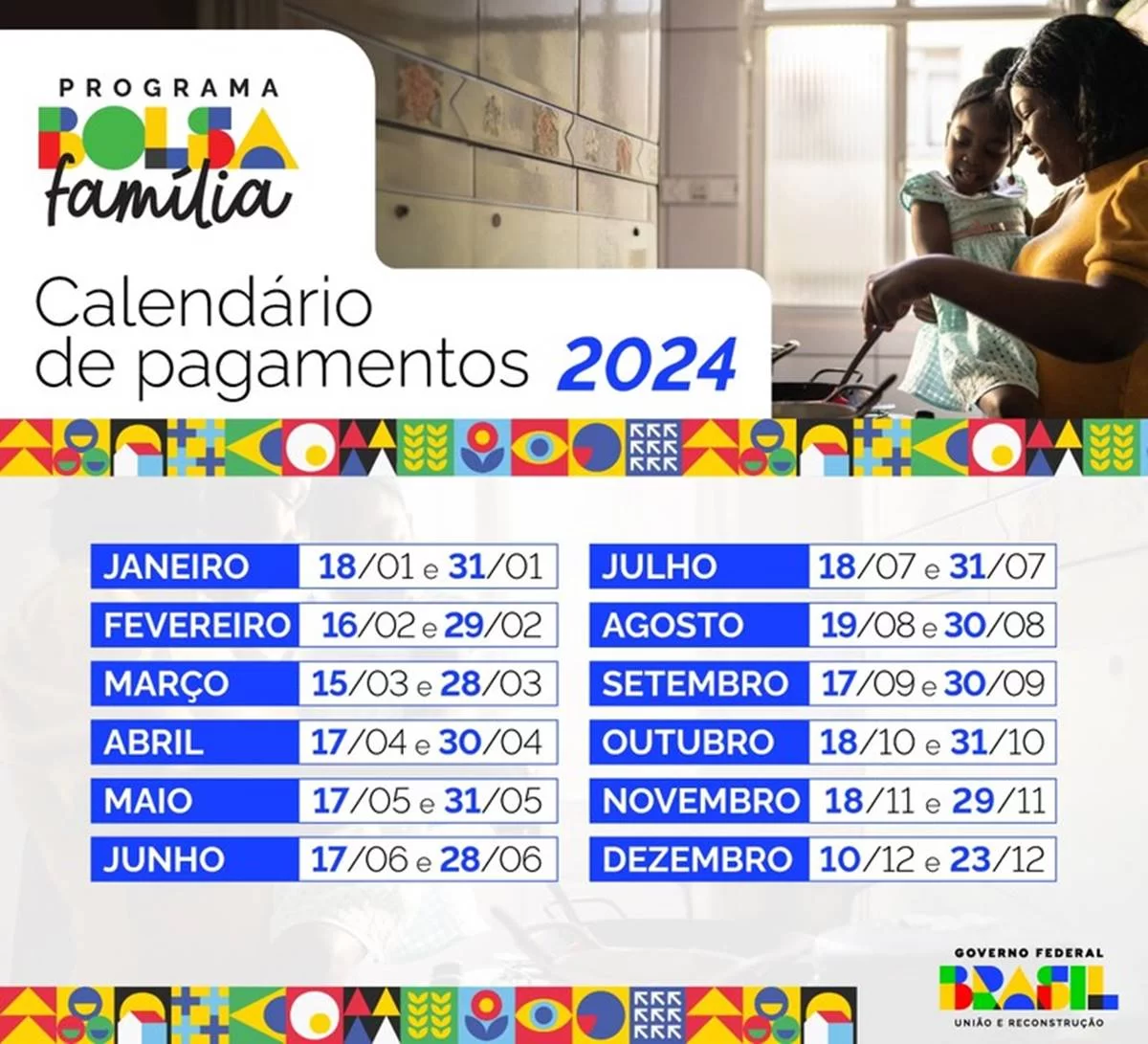 PAÍS | O governo federal divulgou, nesta terça-feira (26/12), o calendário de pagamentos do Bolsa Família para o próximo ano, 2024.