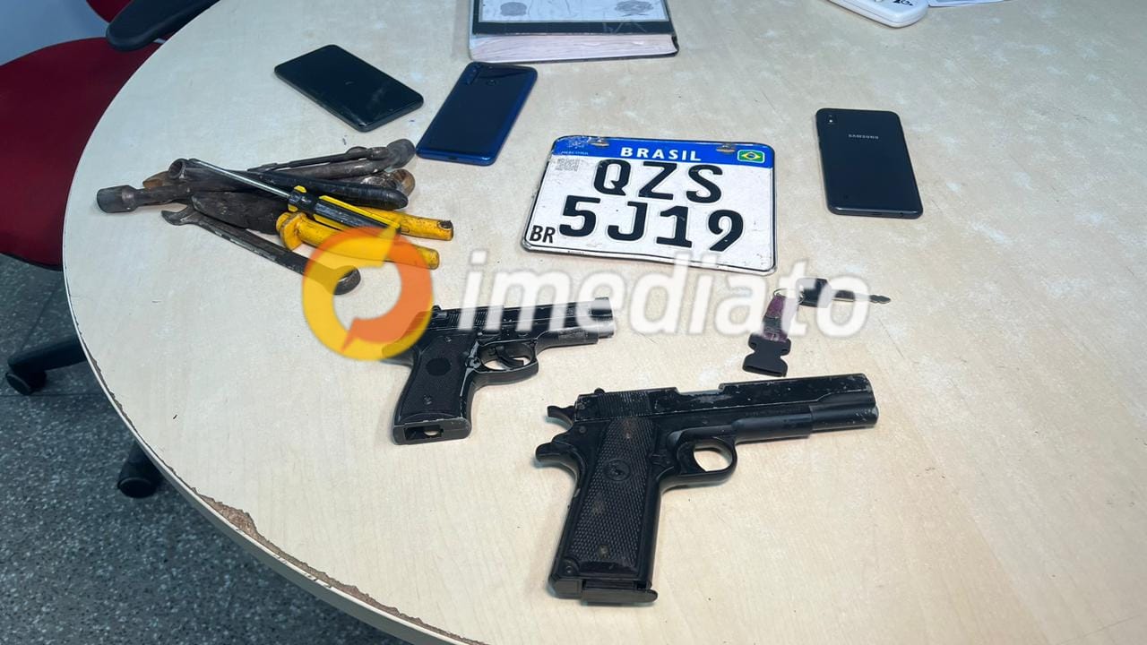 “Os elementos estariam realizando o desmanche da moto, porém, como a motocicleta tem rastreamento conseguimos realizar a abordagem dos elementos, com eles foram apreendidos dois simulacros com o vulgo “Polegar” que seria o mandante do crime. os mesmos realizavam assaltos com a moto após retirar a placa”, disse o Tenente da PM.