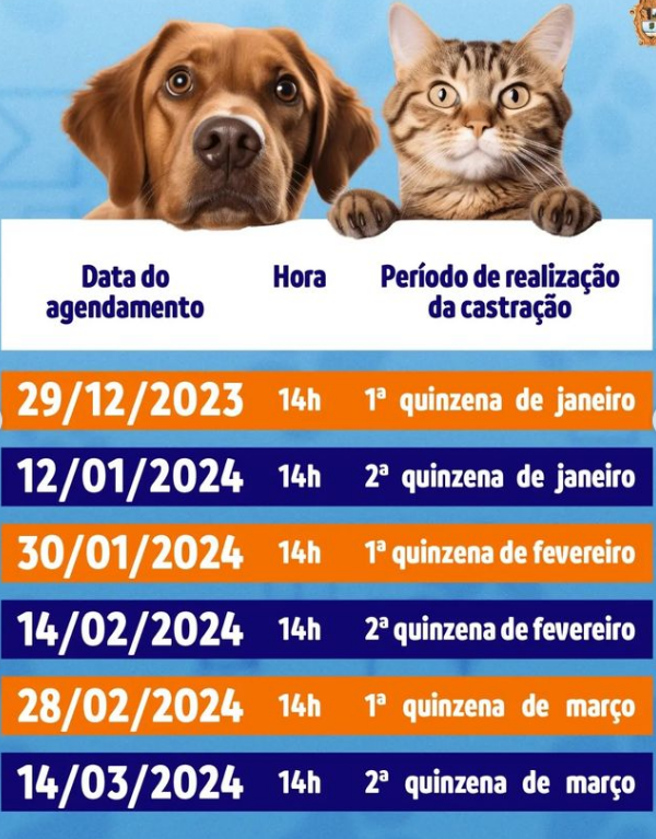MANAUS-AM | Foi divulgado, nesta sexta-feira (29), o novo calendário para castração de cães e gatos em Manaus. As datas para o agendamento se estendem até o mês de março de 2024.