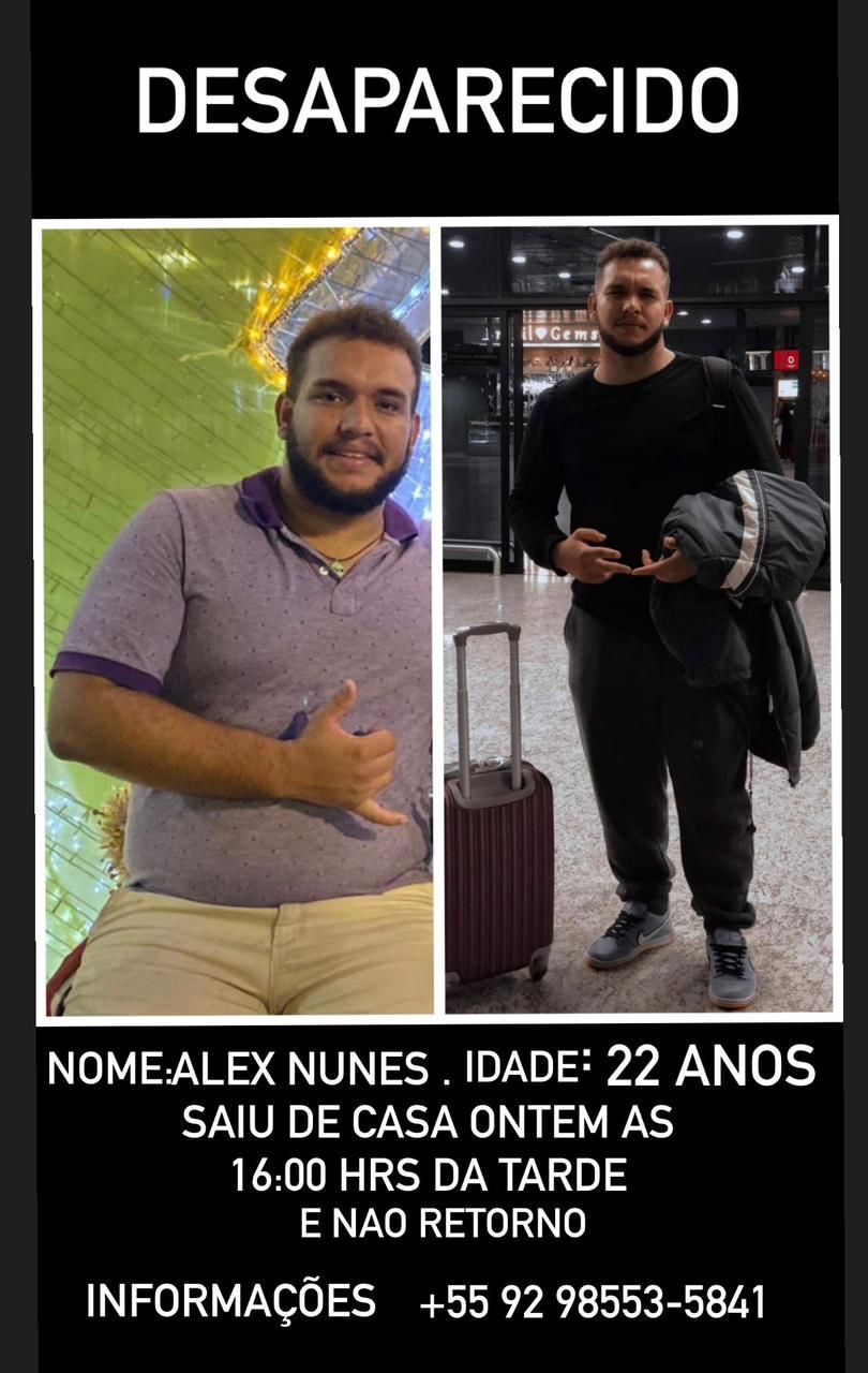Manaus – AM| Um motorista de aplicativo identificado como Alex Nunes Pereira, de 22 anos, está desaparecido desde a tarde desta quinta-feira (4), após devolver o carro alugado que usava para trabalhar no bairro Monte das Oliveiras, na zona Norte da cidade.