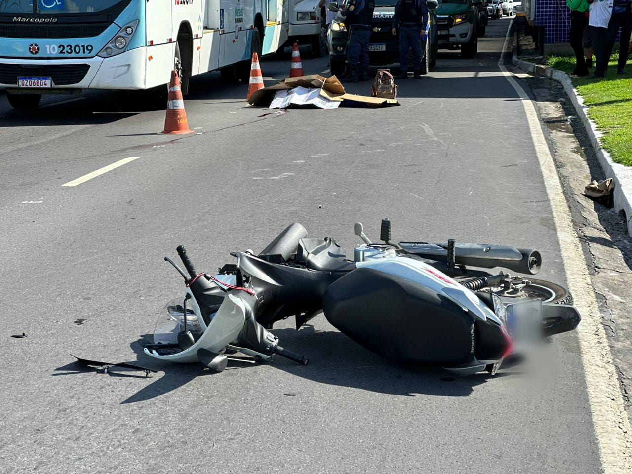 O condutor da motocicleta ficou ferido e após receber atendimento médico no local, foi encaminhado pela equipe de Serviço de Atendimento Móvel de Urgência (SAMU), para um hospital na cidade.
