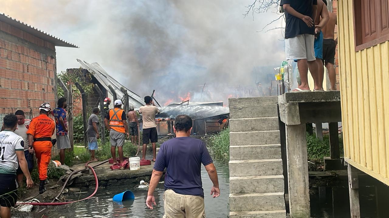 O Corpo de Bombeiros Militar do Amazonas (CBMAM) informa que foi acionado, na tarde desta sexta-feira(12), para atender uma ocorrência de incêndio de grande proporção, que atingiu 11 casas no bairro Cachoeirinha, na zona sul da capital.