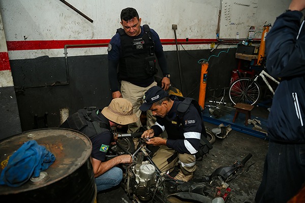 A investigação aponta, ainda, que os suspeitos gerenciam um esquema de encomenda de furtos e roubos de motocicletas, as quais, posteriormente, eram destinadas a oficinas parceiras, local onde eram realizados os desmanches clandestinos e a venda de peças oriundas dos crimes.