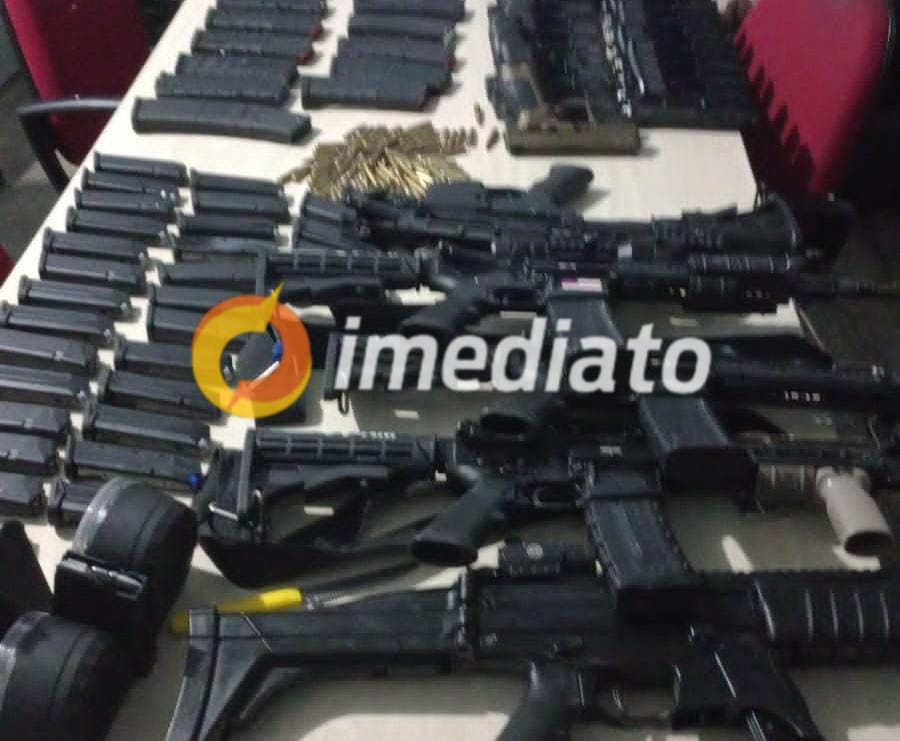 MANAUS-AM | Policiais Militares da 13° Companhia Interativa Comunitária de Polícia (CICOM) em ação integrada com Policiais das Rondas Ostensivas Cândido Mariano (ROCAM) apreenderam fuzis, submetralhadoras e pistolas, na noite desta sexta-feira (02), na rua Bem-te-vi, bairro Nossa Senhora de Fátima 2, Zona Norte de Manaus.