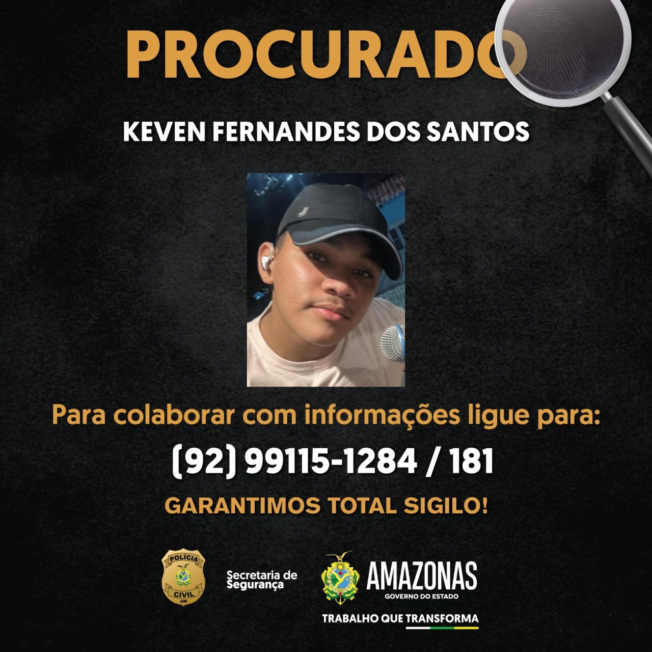 A PC-AM solicita a quem tiver informações sobre a localização de Keven Fernandes dos Santos, deve repassar aos números (92) 99115-1284, disque-denúncia da Depca, ou pelo 181, da Secretaria de Estado de Segurança Pública (SSP-AM). “A identidade do informante será preservada”, garantiu a delegada.