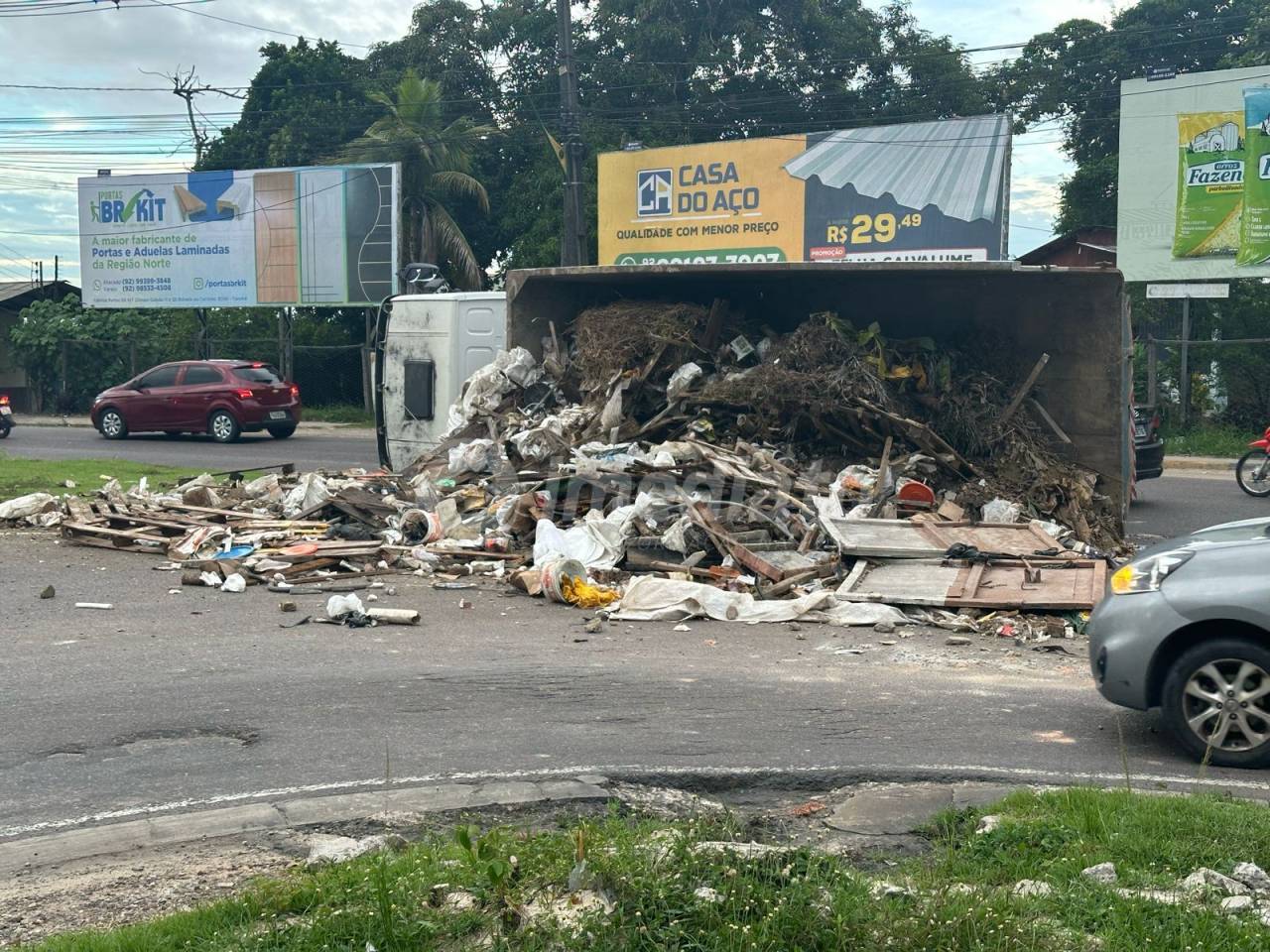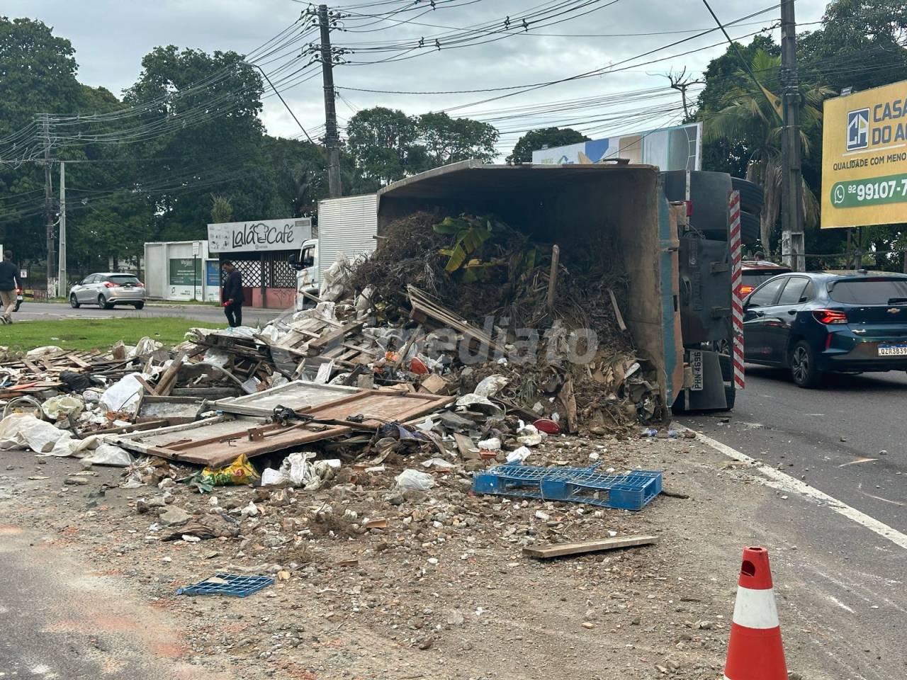 Manaus-Am| Na tarde desta segunda-feira (11), Um acidente ocorreu na Avenida Torquato Tapajós, por volta das 4h30 da tarde, quando uma caçamba carregada de entulho tombou.