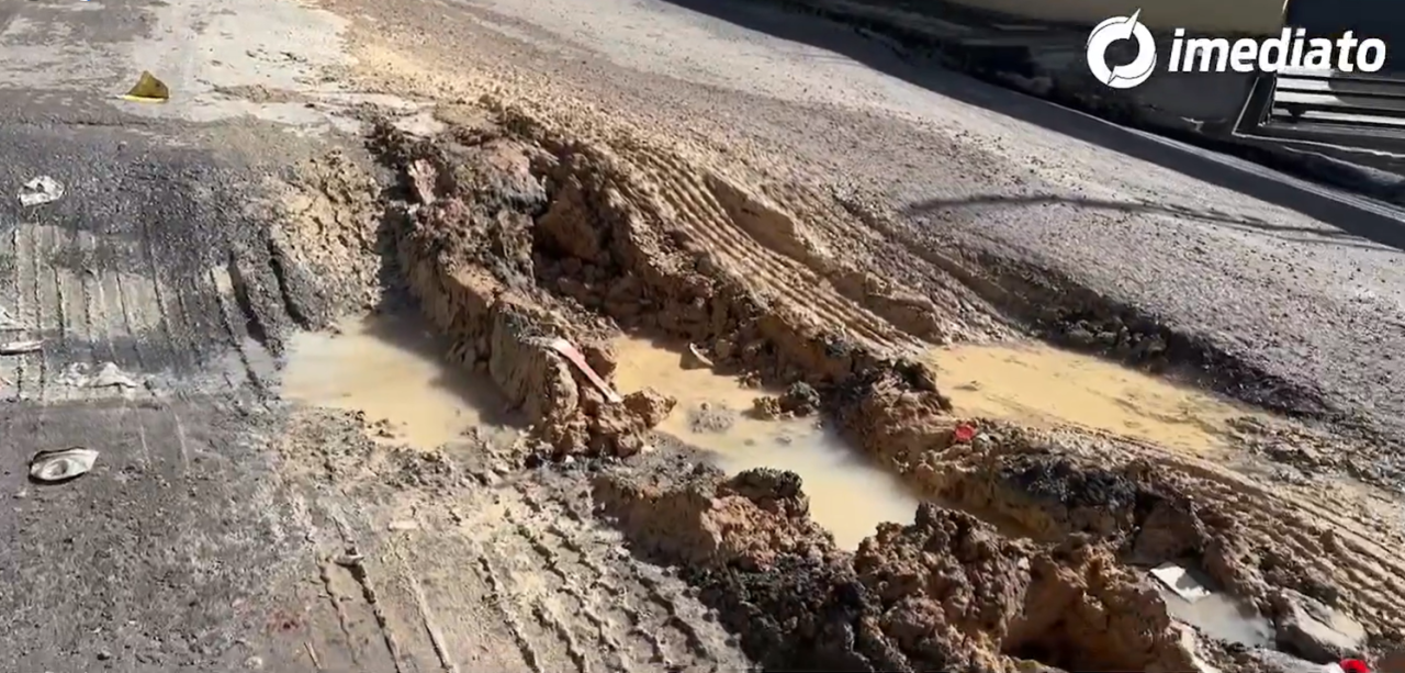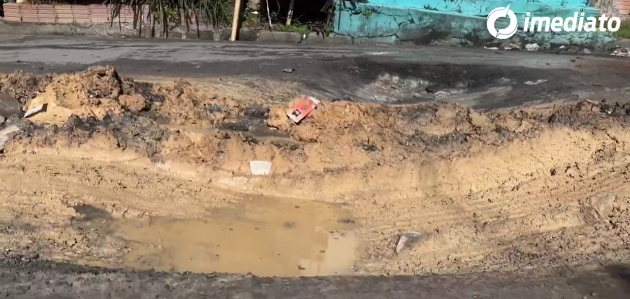 Moradores do bairro Grande Vitória reclamam de cratera deixada por Concessionária de Água