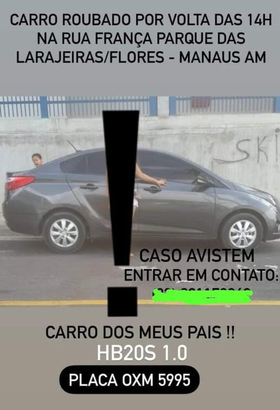 MANAUS-AM | Dois criminosos armados renderam uma família e roubaram o carro das vítimas, na tarde desta quarta-feira (03), na rua França, bairro Parque das Laranjeiras, em Manaus.