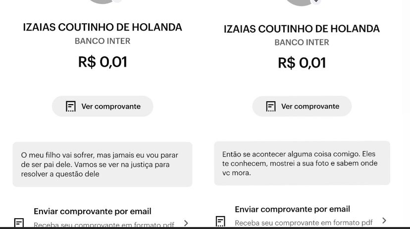 Ainda segundo relatos, o agressor ameaçava a vítima através de transferências de pix no valor de 0,01 centavo.