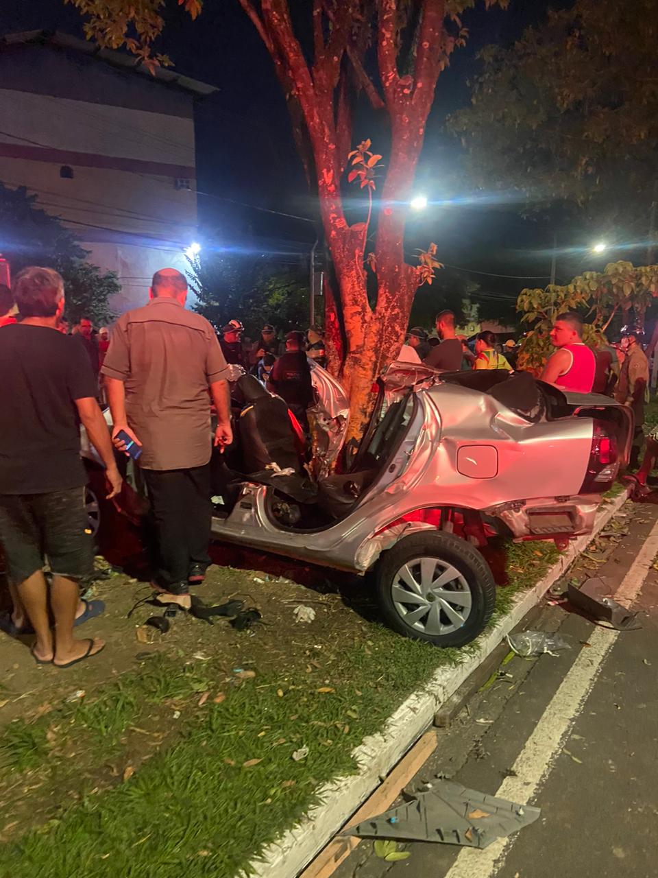 As seis vítimas estavam em um carro modelo Toyota Etios que bateu em uma árvore no canteiro central da avenida. O carro transitava no sentido bairro-centro.