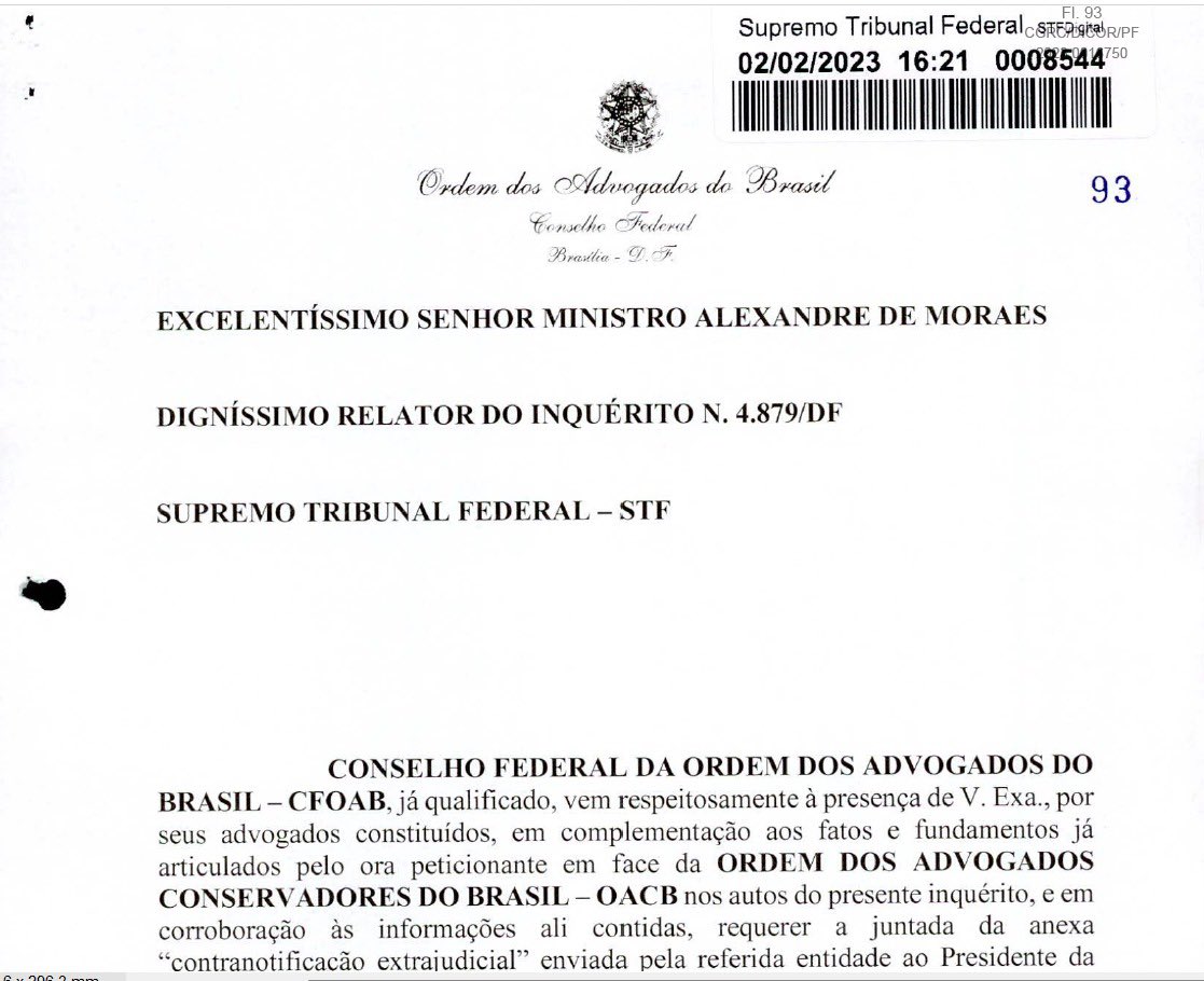 O Conselho Federal da Ordem dos Advogados do Brasil (CFOAB) acionou o Supremo Tribunal Federal (STF), solicitando a intervenção do ministro Alexandre de Moraes em uma controvérsia envolvendo a Ordem dos Advogados Conservadores do Brasil (OACB). A iniciativa veio à tona por meio de um documento divulgado pelo deputado federal Marcel van Hattem nas redes sociais, onde o CFOAB denuncia supostas ações ilícitas por parte da OACB, que seriam contrárias aos princípios democráticos.