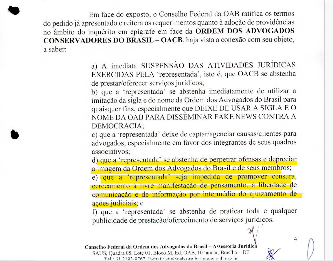 Pedido da OAB nacional para incluir advogados conservadores em inquérito no STF sobre ataques à democracia gera controvérsia.
