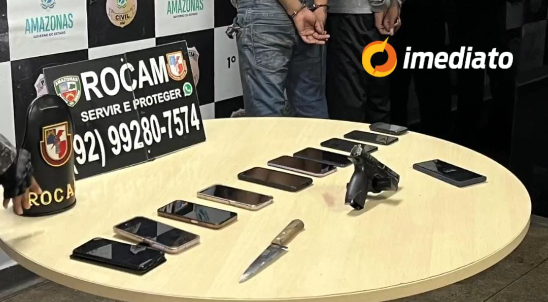Um dos meliantes apontava a arma para o motorista enquanto orientava a direção e fazia cobertura para o comparsa que ia recolhendo celulares e bens das vítimas. Os dois suspeitos foram abordados PELA ROCAM MOTO após desembarcarem do coletivo e entraram na mata da UFAM iniciando uma perseguição que resultou na prisão dos dois. Com eles foram encontrados 11 celulares e um simulacro de arma de fogo.