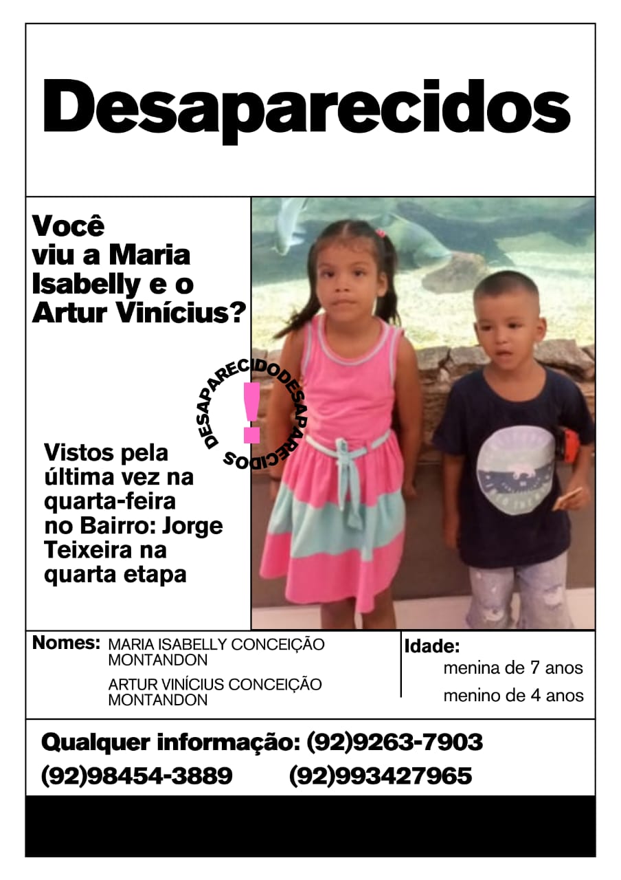 Os famílias pedem ajuda para encontrar Ana Claudia e seus filhos, que já estão desaparecidos a 5 dias. Qualquer notícia ou informação entrar em contato nos telefones 92 99263-7902 ou 92 99342-7965