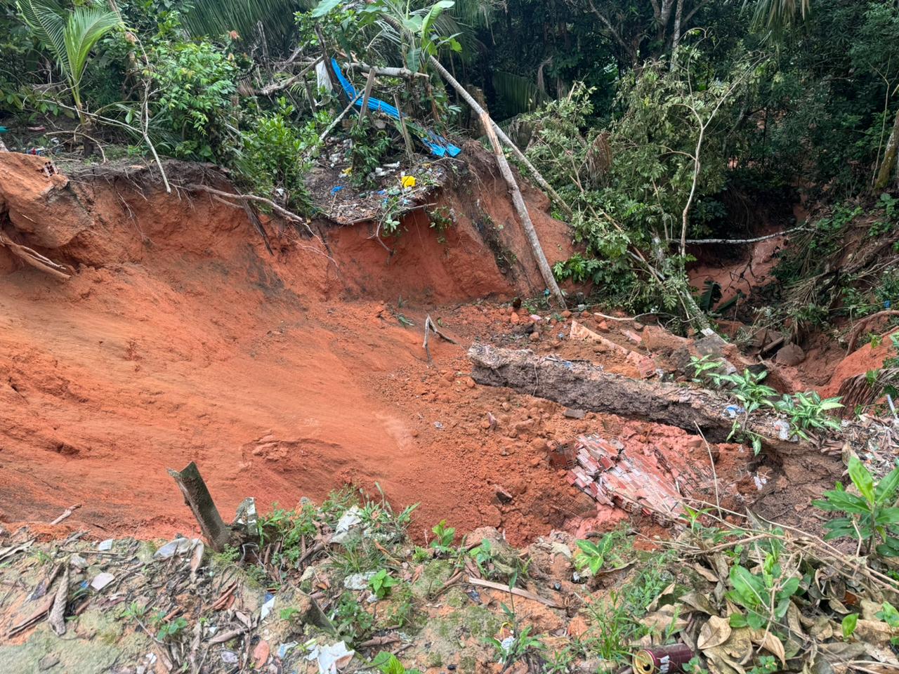 Na manhã desta quinta-feira (30), cerca de duas casas estão sob risco de desabamento devido a uma erosão provocada pelo escoamento irregular do único bueiro presente na rua Ernesto Henrique, no bairro Mauazinho, zona Leste de Manaus. Segundo uma moradora, ao procurar ajuda para a situação, um servidor sugeriu que ela buscasse auxílio com traficantes da área, alegando que eles resolveriam o problema.