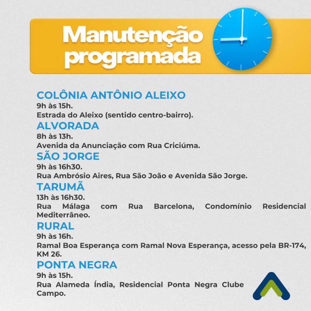 Desligamentos temporários afetarão moradores de bairros da capital amazonense durante manutenção da rede elétrica.