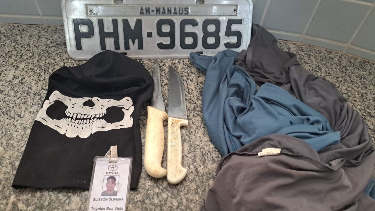 Durante a tarde de hoje a polícia prendeu Elison da Silva Oliveira, um dos suspeitos, com ele a polícia encontrou a máscara e as facas utilizadas no crime.
