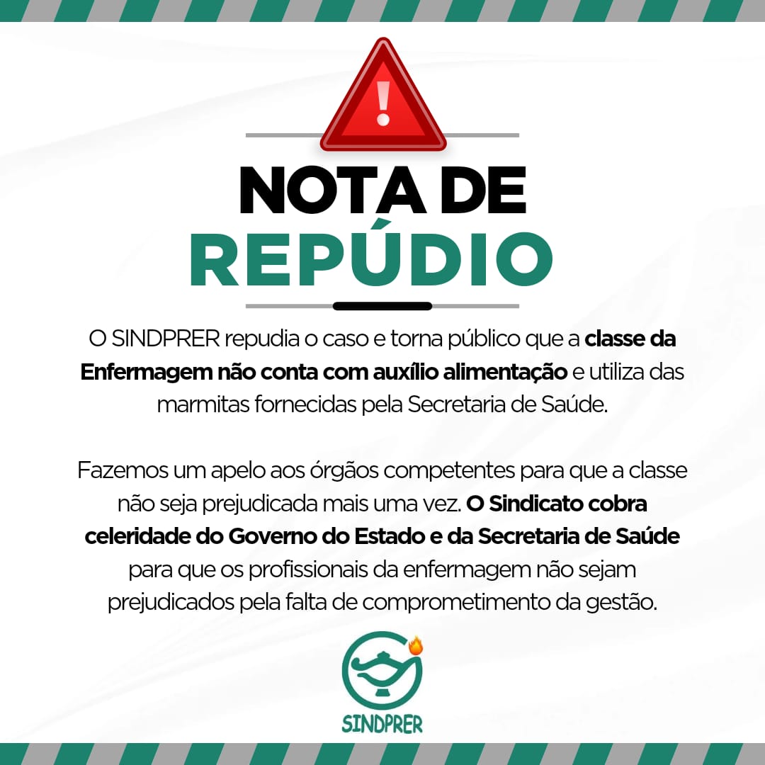 Em nota, o SINDPRER repudia o caso e informa que a classe da enfermagem não conta com auxílio alimentação e utiliza das marmitas fornecidas pela secretaria de saúde.
