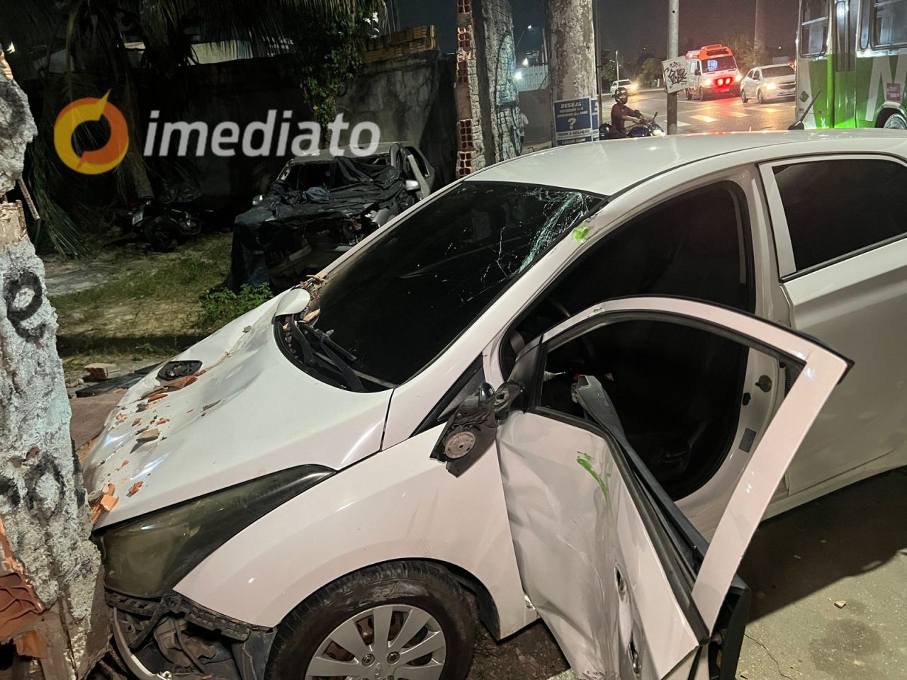 De acordo com testemunhas e informações preliminares, o ônibus estava em deslocamento no sentido centro-bairro quando o carro HB20, que vinha de uma rua lateral, cruzou sua trajetória. Aparentemente, o motorista do HB20 pode ter avançado o sinal vermelho ou não percebeu a aproximação do ônibus, resultando no impacto violento, um segundo carro que estava estacionado acabou sendo atingido e ficou destruído.