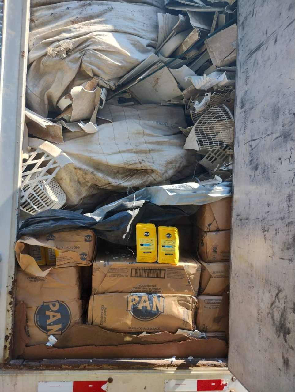 “Ao ser abordado pelos ficais da Receita Federal, o condutor do veículo afirmou que transportava produtos para reciclagem. No entanto os fiscais desconfiaram do peso do veículo que estava muto além do que aparentava. Foi quando fizeram a verificação e encontram, embaixo do material para reciclagem, 300 fardos de 20kg de farinha venezuelana, totalizando seis toneladas”, disse o delegado.