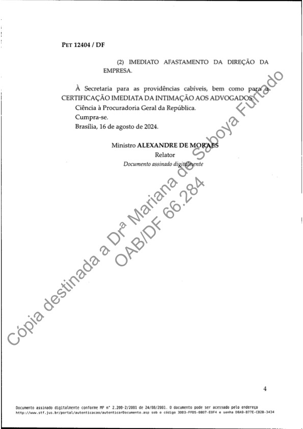 Em tom contundente, a empresa atribui a responsabilidade exclusivamente a Moraes, caracterizando suas ações como “incompatíveis com um governo democrático”. O comunicado chega ao ponto de sugerir uma escolha ao povo brasileiro entre “democracia ou Alexandre de Moraes”.
