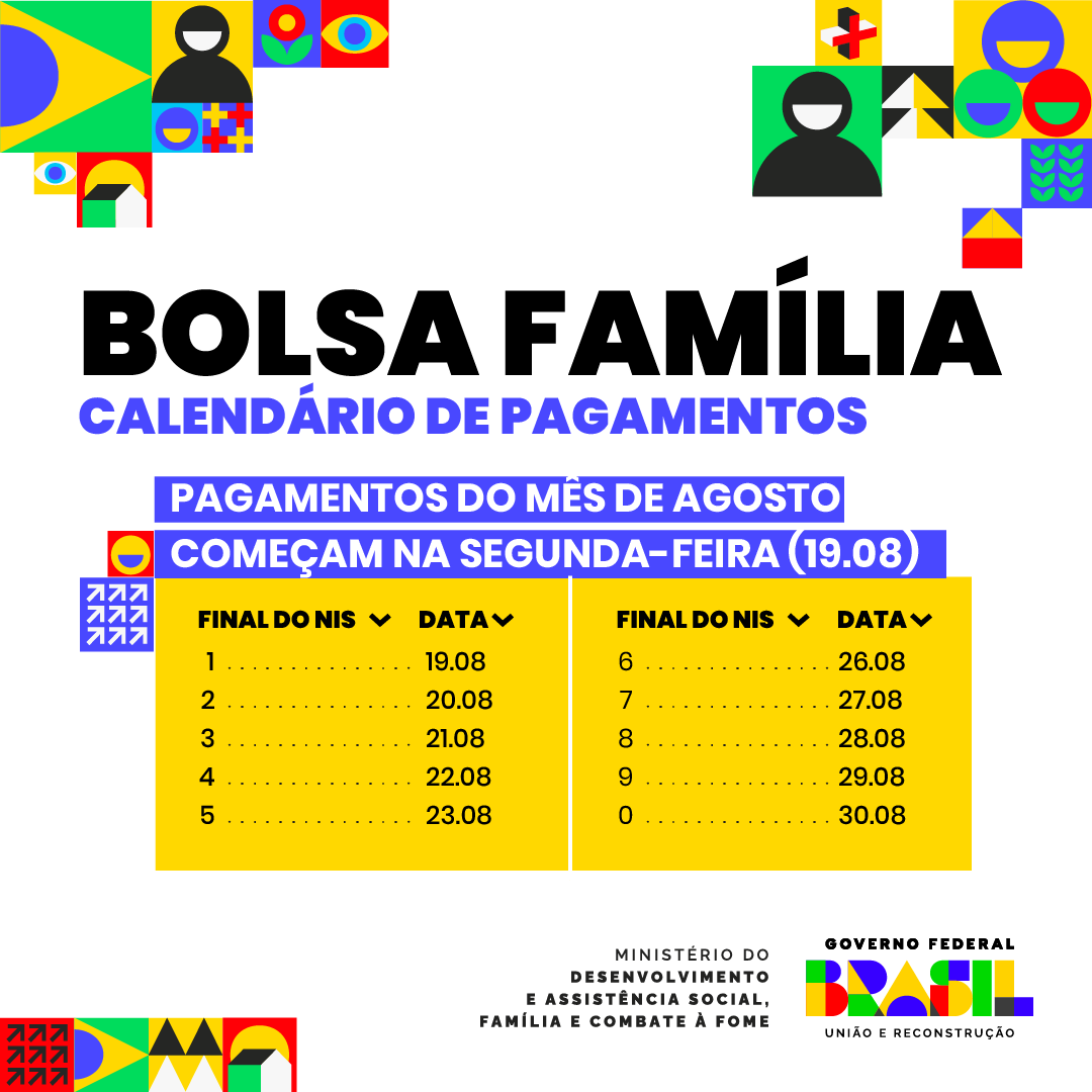 Os repasses do Bolsa Família são feitos sempre de maneira escalonada. Em agosto, os pagamentos iniciam nesta segunda-feira (19.08), com os beneficiários com Número de Identificação Social (NIS) final 1.