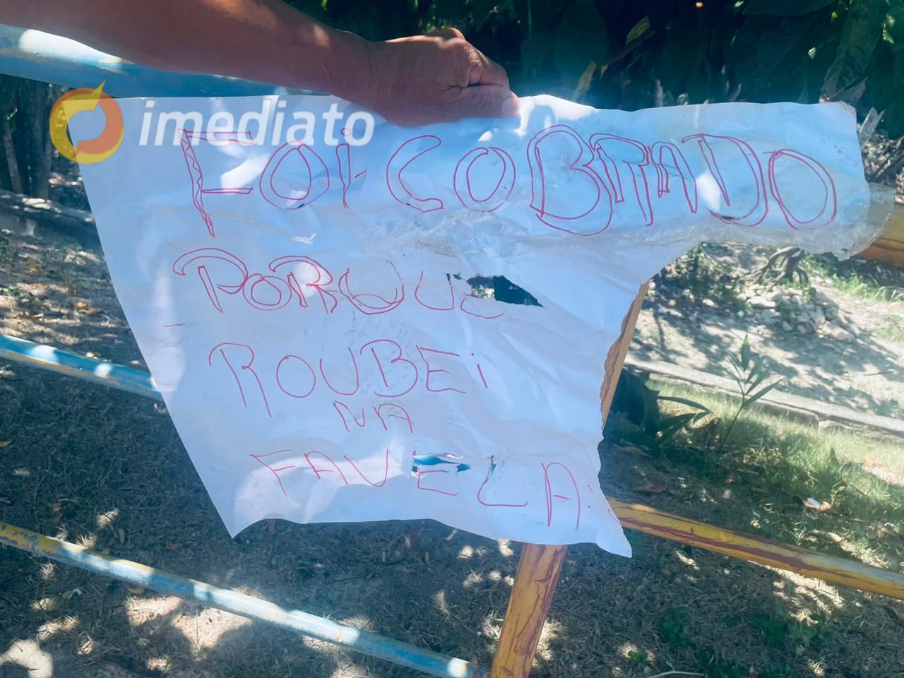 De acordo com relatos, o suposto assaltante foi capturado por um grupo após a realização dos furtos. Em seguida, o homem foi amarrado e agredido. Uma placa foi colocada sobre ele com uma mensagem explícita, servindo como um aviso para aqueles que cometem crimes na localidade.
