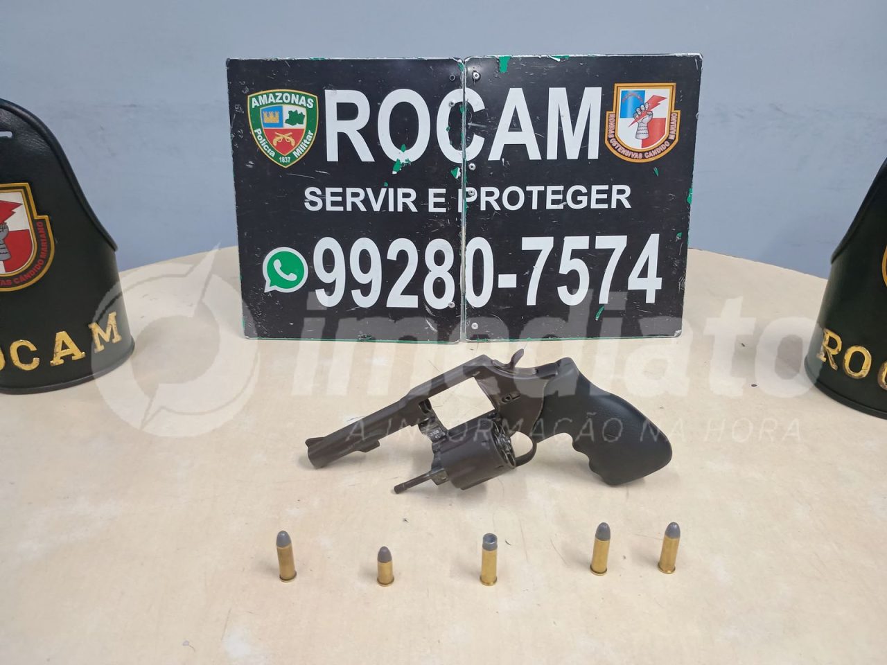 MANAUS-AM | Na noite desta segunda-feira (16), a Rondas Ostensivas Cândido Mariano (ROCAM) efetuou a prisão de Abimael Queiroz Santos Junior, de 18 anos, por porte ilegal de arma de fogo. A operação ocorreu no bairro Jorge Teixeira, etapa 2, após uma denúncia anônima que levou os policiais ao local indicado.