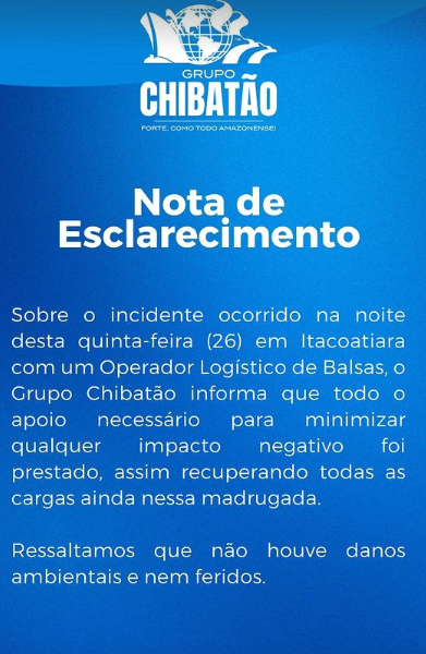 Na noite de quinta-feira (26), vários containers foram acidentalmente derrubados no Rio Amazonas durante uma operação no píer flutuante do Porto Chibatão, localizado em Itacoatiara, a 270 quilômetros de Manaus.