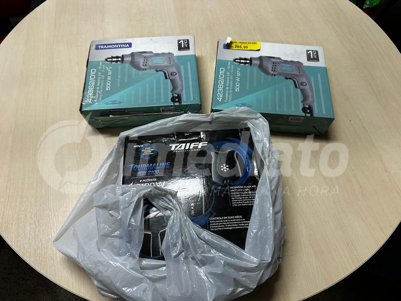 O Sargento Hossaine, do 1° Distrito Integrado de Polícia (DIP), relatou que a equipe foi chamada por meio do CIOPS 190. “Chegamos ao local e os funcionários nos apresentaram o infrator, que estava com ferramentas e um secador de cabelo, este último não pertencente ao supermercado”, explicou.