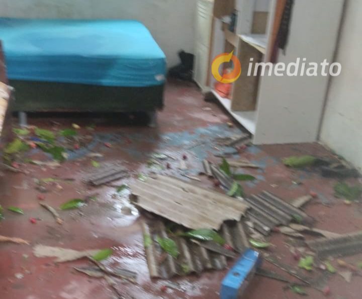 Árvore cai e destrói telhado de residência no bairro Colônia Antônio Aleixo
