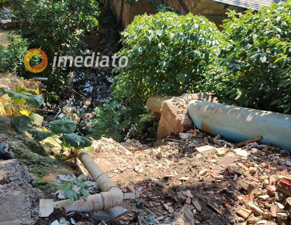 A obra, realizada pela concessionária de água, foi iniciada há algum tempo, mas permanece inacabada, resultando em um cenário alarmante. “Quando chove, a situação fica crítica. A água invade as casas, e temos medo de que o barranco deslize,” relata o morador Erivelto, que vive em uma das residências mais afetadas.