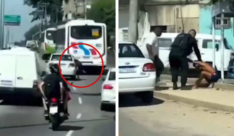 Na manhã deste sábado (16), um homem foi flagrado com parte do corpo do lado de fora de um veículo modelo Ônix, de cor prata e placa NAQ-4E96, enquanto o carro transitava pela Rodovia Álvaro Maia, próximo ao conhecido “Calçadão”, no Distrito Industrial de Manaus.