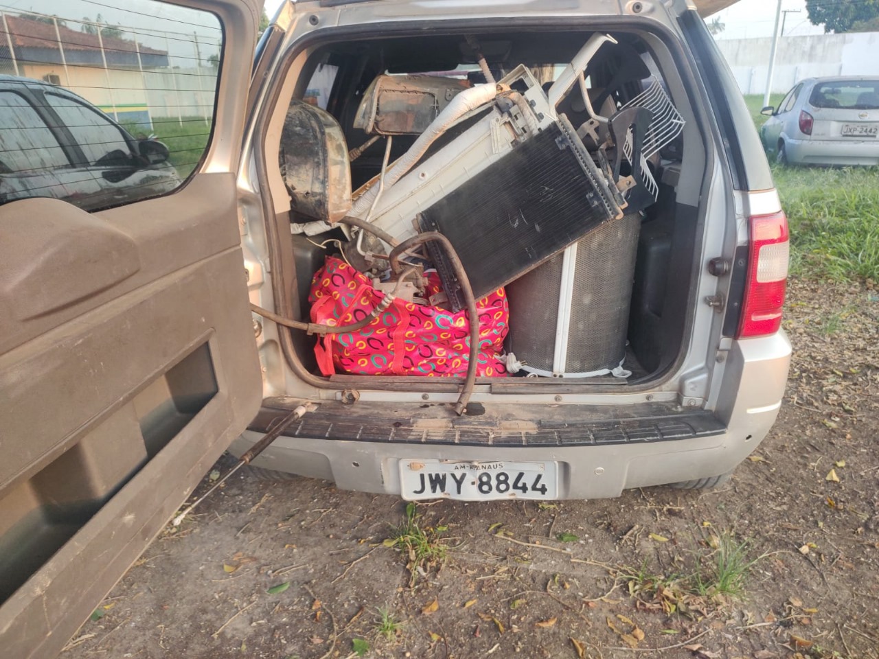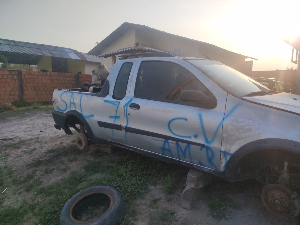 Na abordagem, os policiais encontraram um ar-condicionado, dois faróis de veículo e dois aparelhos celulares, itens que haviam sido furtados da residência. Além disso, as pichações na casa indicavam a sigla de uma facção criminosa do estado do Amazonas.
