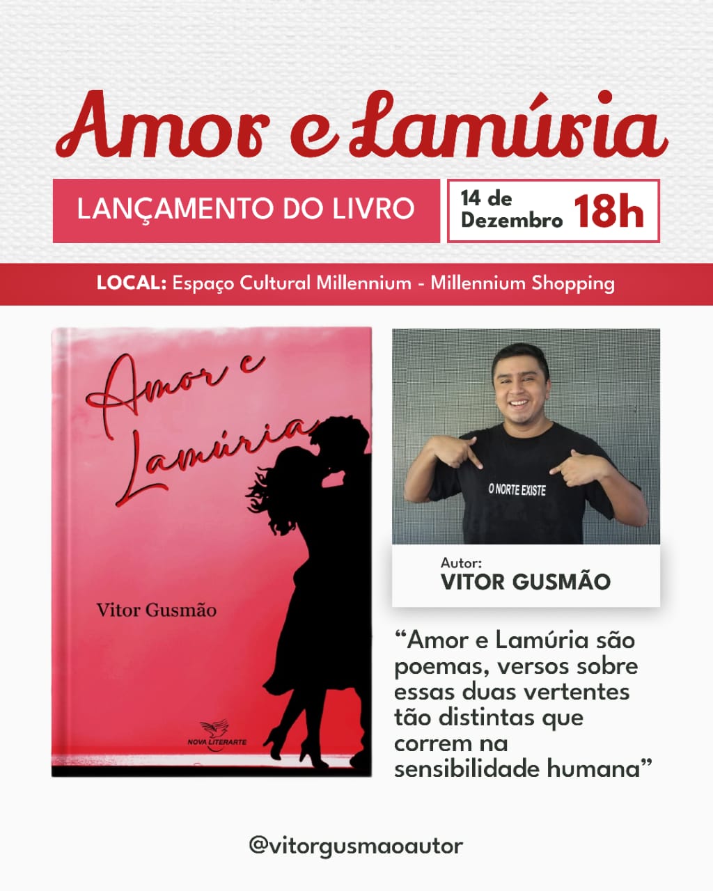 O escritor amazonense Vitor Gusmão, natural de Manaus, está prestes a lançar seu segundo livro de poesia, intitulado Amor e Lamúria, em um evento que promete emocionar os amantes da literatura local. O lançamento ocorrerá no próximo dia 14 de dezembro, a partir das 18h, no Espaço Cultural Millennium, localizado no Millennium Shopping. O evento será marcado por uma noite de autógrafos e um sarau, onde serão recitados alguns dos poemas presentes na obra, com a participação de renomados poetas amazonenses.