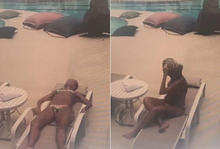 Imagens de câmeras de segurança registraram o momento em que Rosângela Torres da Silva, de 47 anos, estava deitada em uma espreguiçadeira. De forma repentina, o estilhaço atingiu sua cabeça. Assustada, ela levou a mão ao local sem compreender imediatamente o que havia ocorrido.