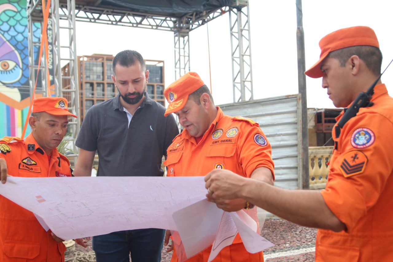 A vistoria foi coordenada pela Diretoria de Atividades Técnicas (DAT) do Corpo de Bombeiros e, também, participaram o comandante-geral do CBMAM, coronel Orleilso Muniz, o comandante de Bombeiros da Capital, coronel Reinaldo Menezes, e representantes da empresa responsável pela queima de fogos.