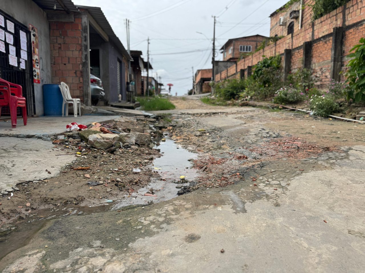 A situação se agrava em períodos de chuva, quando a rua fica tomada por lama e alagamentos, intensificando os transtornos. Segundo os moradores, a justificativa apresentada pelas autoridades é que o local integra um projeto do governo que impede o asfaltamento. Apesar de frequentes denúncias, os apelos por melhorias ainda não foram atendidos, e a comunidade segue reivindicando atenção do poder público para resolver o problema.