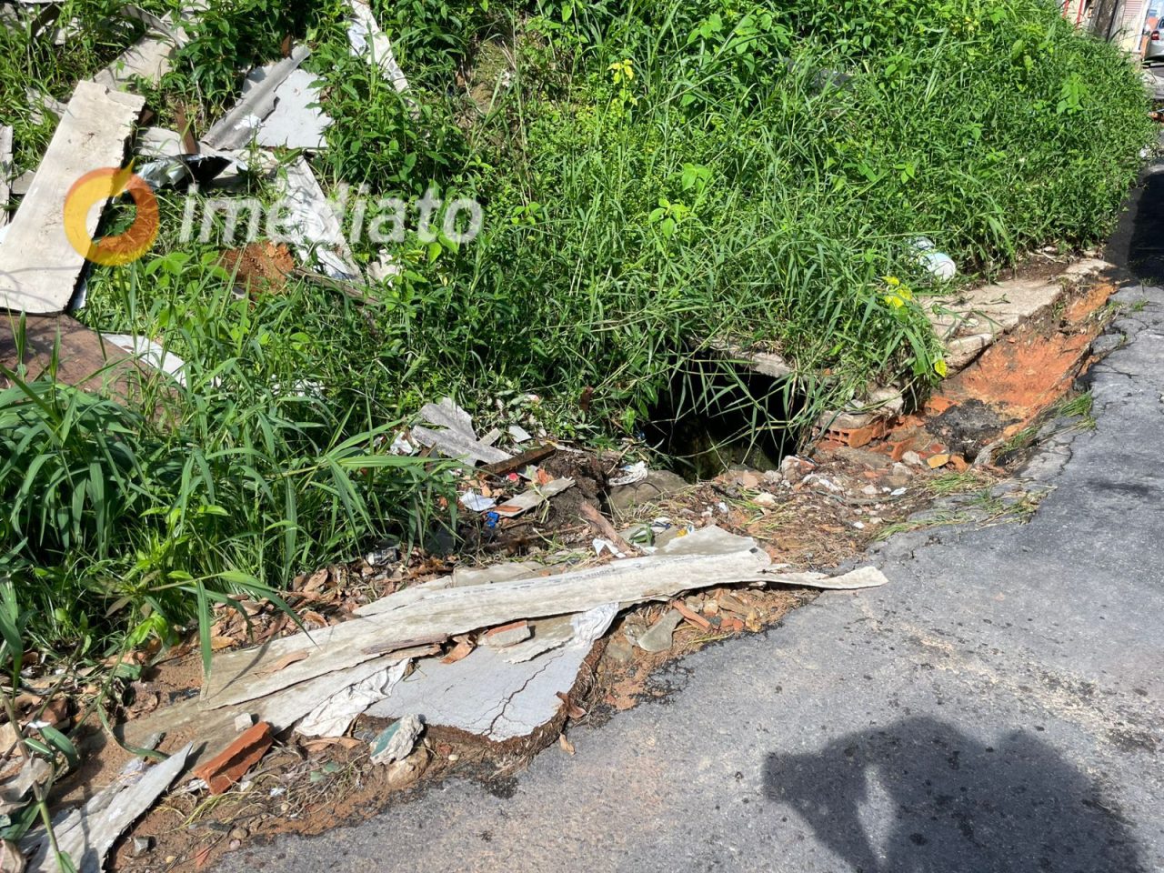 A região também tem sofrido com bueiros entupidos e buracos nas ruas, que dificultam ainda mais a mobilidade e agravam o risco de acidentes. Em muitos pontos da rua, a água acumulada não tem para onde escoar, e o terreno se torna cada vez mais instável. O cenário, que já era preocupante, foi agravado pela intensidade das chuvas recentes.