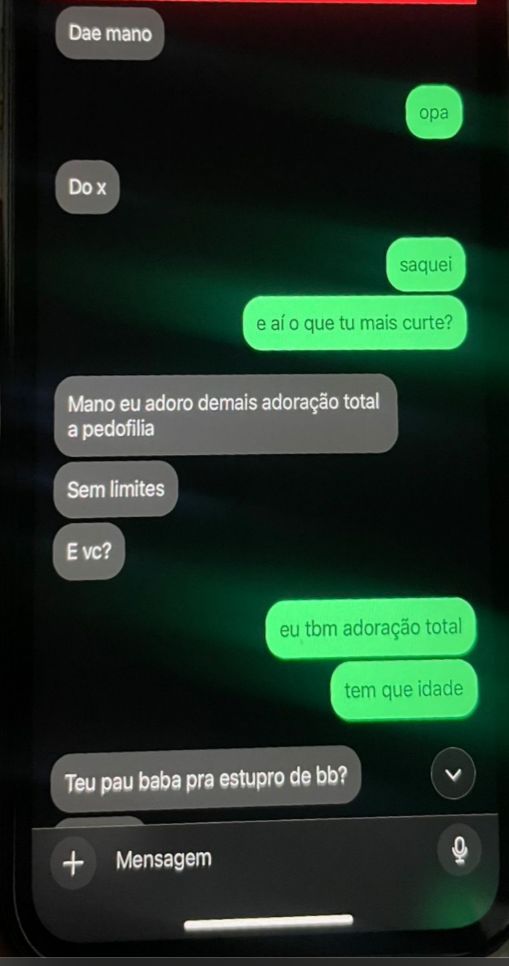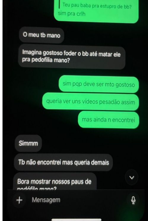 Ele foi interceptado e durante a abordagem, os agentes encontraram mais arquivos de conteúdo pornográfico infantil no novo dispositivo, e ele foi autuado em flagrante por isso. Em prints tirados de conversas no aparelho celular do estudante, o mesmo confirmava ter desejos em bebês.