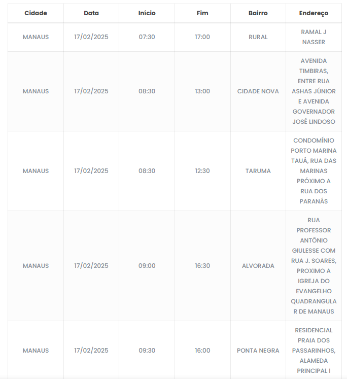 A Amazonas Energia orienta os moradores a se programarem para evitar transtornos durante o período sem eletricidade. Em caso de dúvidas ou necessidade de informações adicionais, a concessionária disponibiliza seus canais de atendimento.