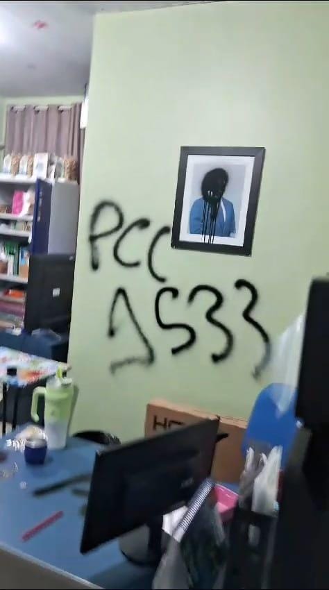 A Escola Municipal Rujane Severiano dos Santos, localizada em Boa Vista, foi alvo de vandalismo na madrugada desta quinta-feira (20). Ao chegar no local, a gestão escolar encontrou as salas de aula reviradas, móveis quebrados e as paredes marcadas com a sigla “PCC” e a frase “passa nada”. A pichação, que remete a uma das maiores facções criminosas do país, deixou o ambiente escolar em total destruição. Até o momento, não foram registrados suspeitos ou prisões.