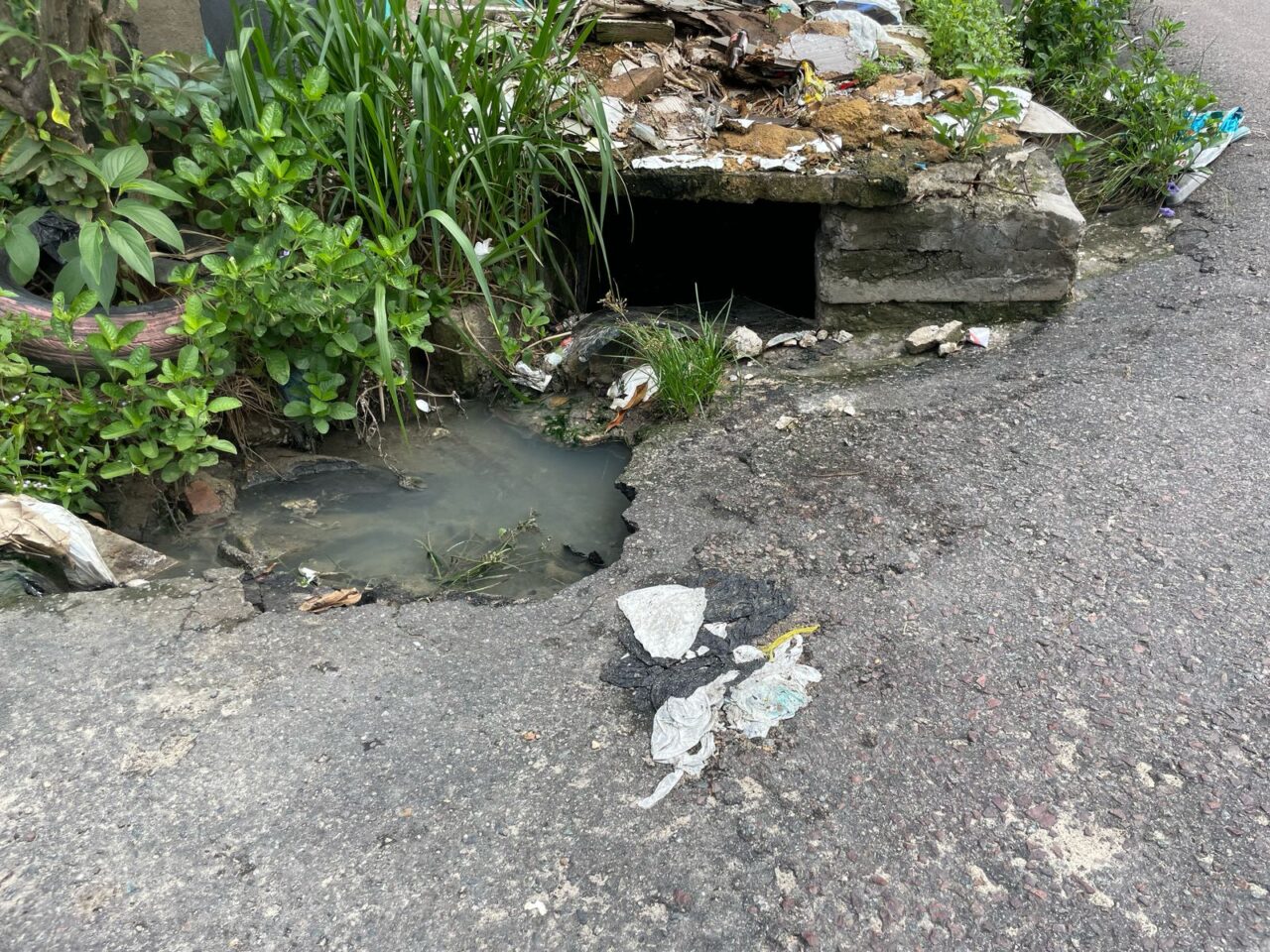 Durante a visita, foi identificado um bueiro sem tampa e completamente entupido. Os moradores cobram medidas da prefeitura, pois alegam que a falta de manutenção potencializa alagamentos e representa um grande risco para crianças e pedestres.