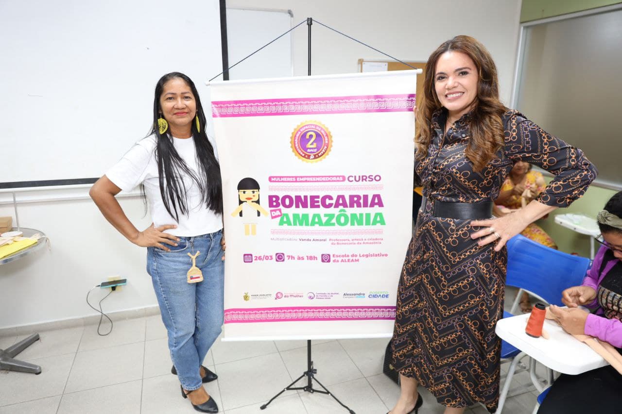 A Procuradoria Especial da Mulher da Assembleia Legislativa do Amazonas realizou nesta quarta-feira (26/03), o curso Bonecaria da Amazônia, uma ação da deputada estadual Alessandra Campelo (Podemos) e do deputado Roberto Cidade (União Brasil) dentro do programa de apoio a mulheres empreendedoras. A atividade aconteceu das 8h às 17h, na Escola do Legislativo.