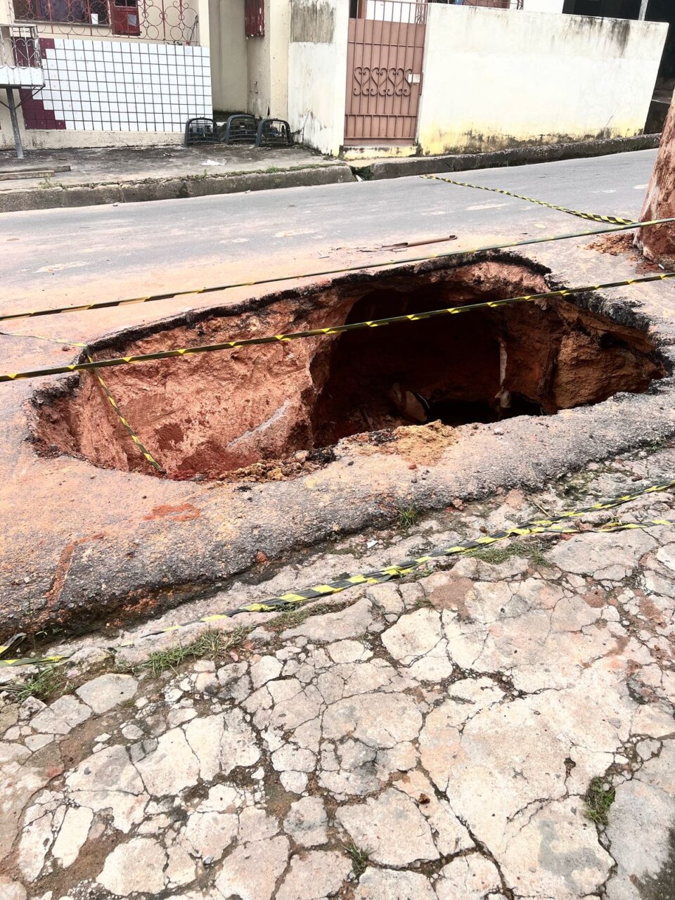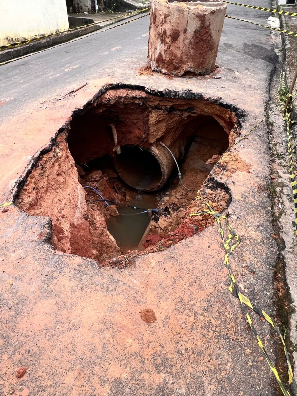 Uma cratera tem causado transtornos aos moradores da Rua Professora Maria M. Fiúza, no bairro Redenção, desde outubro do ano passado. O problema começou com o rompimento de um bueiro e se agravou com as chuvas, provocando o aumento do buraco e danos na estrutura do asfalto.