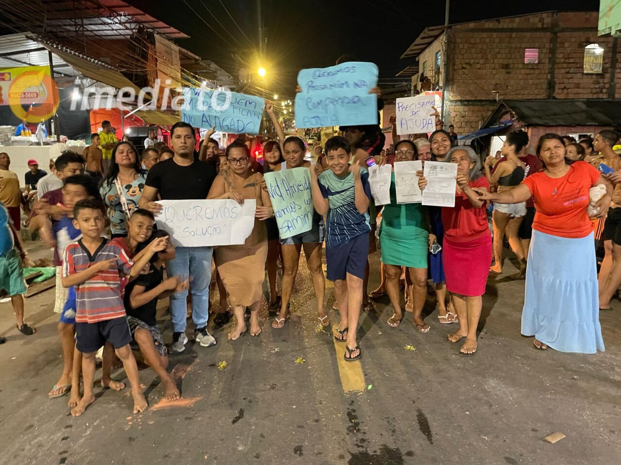 Moradores da Compensa protestam após alagamentos e cobram infraestrutura da Prefeitura de Manaus