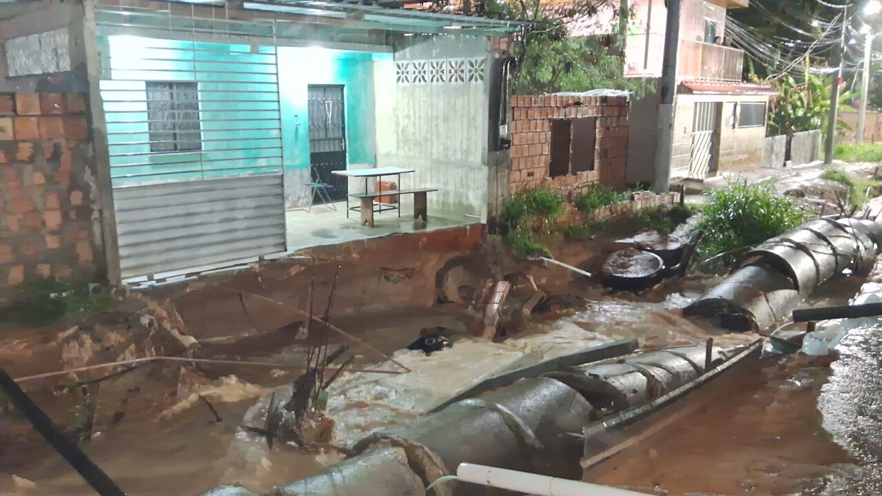 Com a força da água, a rua acabou se transformando em um verdadeiro igarapé, dificultando o acesso de veículos e pedestres. Moradores relataram prejuízos materiais e cobram providências das autoridades para a contenção dos alagamentos, que se agravam a cada novo temporal.