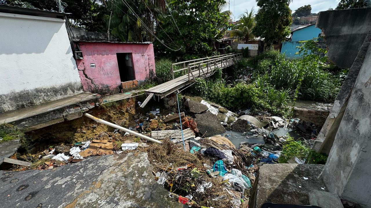 Manaus (AM) — Moradores da Rua Guaiara, no bairro Novo Reino 2, Zona Leste de Manaus, enfrentam há mais de um ano os perigos causados por uma cratera que surgiu após fortes chuvas. O local segue sem reparos por parte do poder público, colocando em risco quem vive na região e dificultando a locomoção dos moradores.