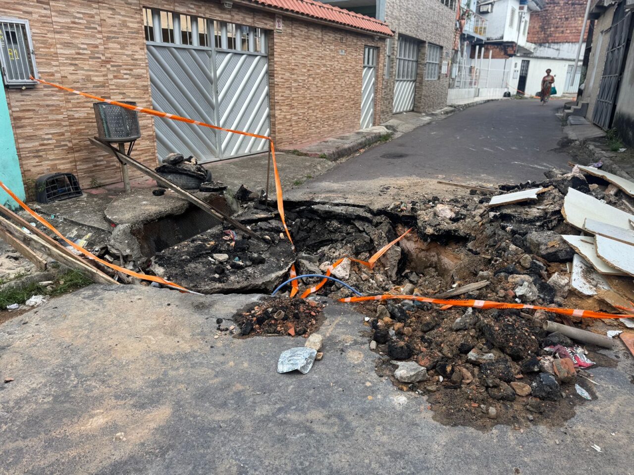 A população cobra uma resposta da Prefeitura de Manaus e da concessionária de águas, exigindo medidas urgentes para recuperação da via e responsabilização pelos danos causados.